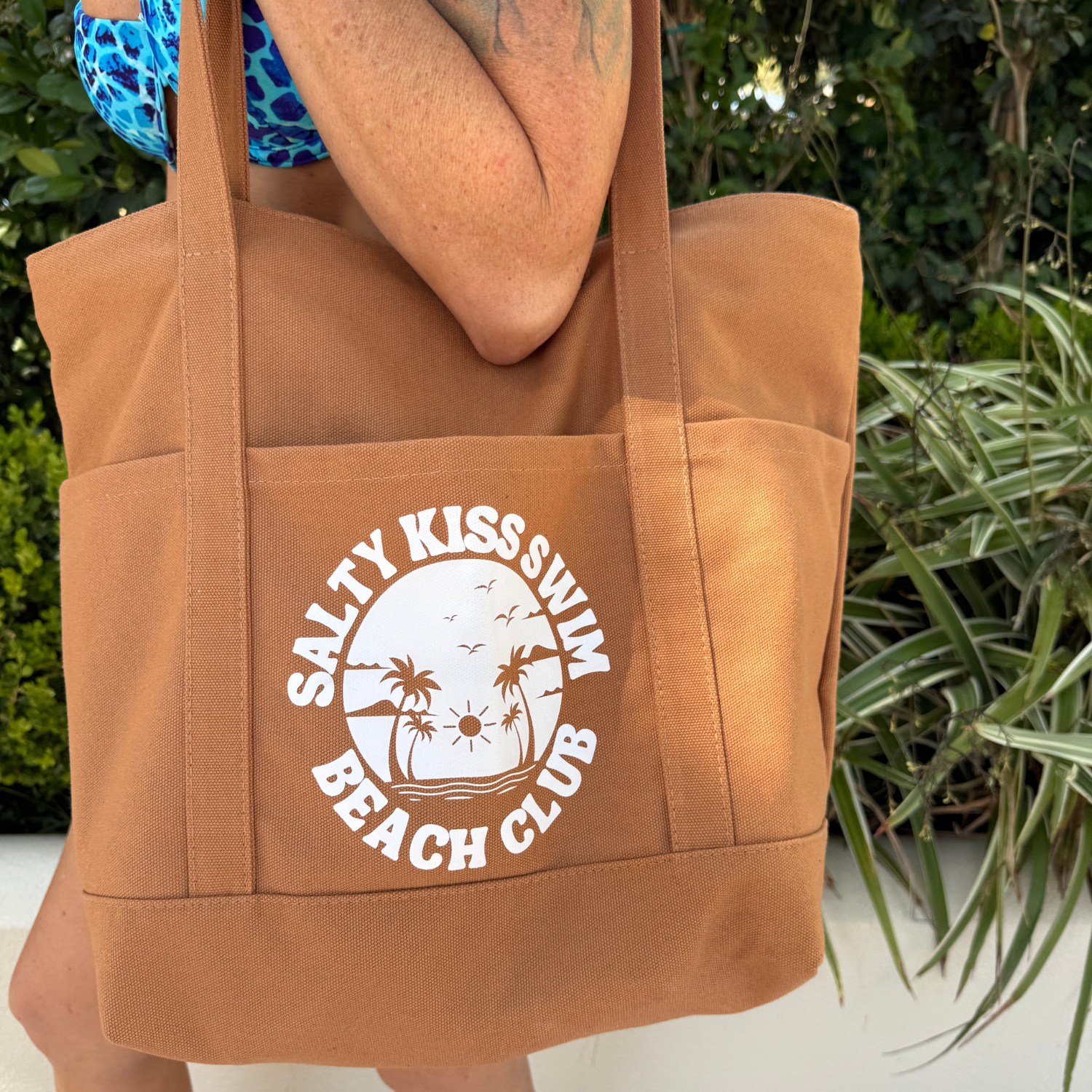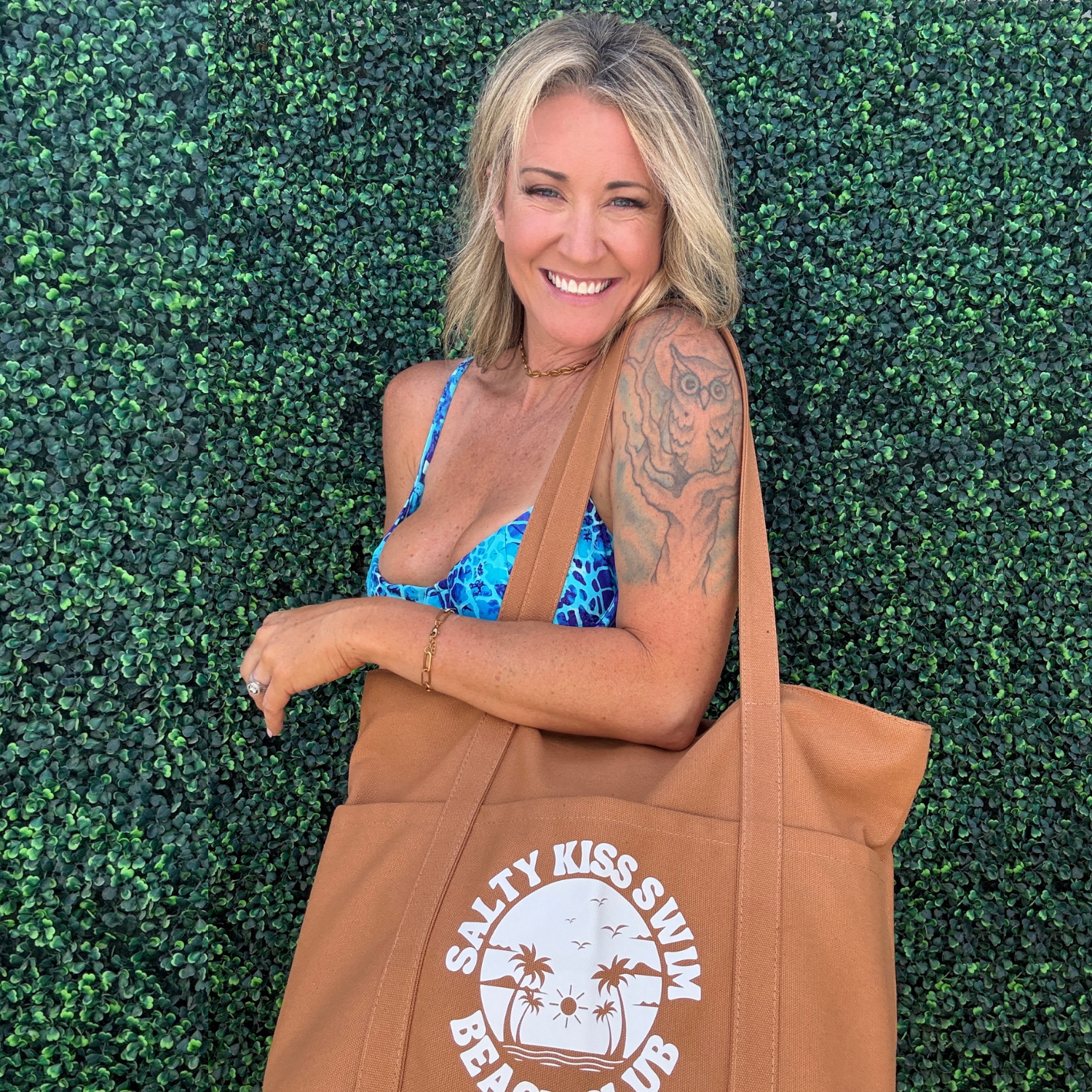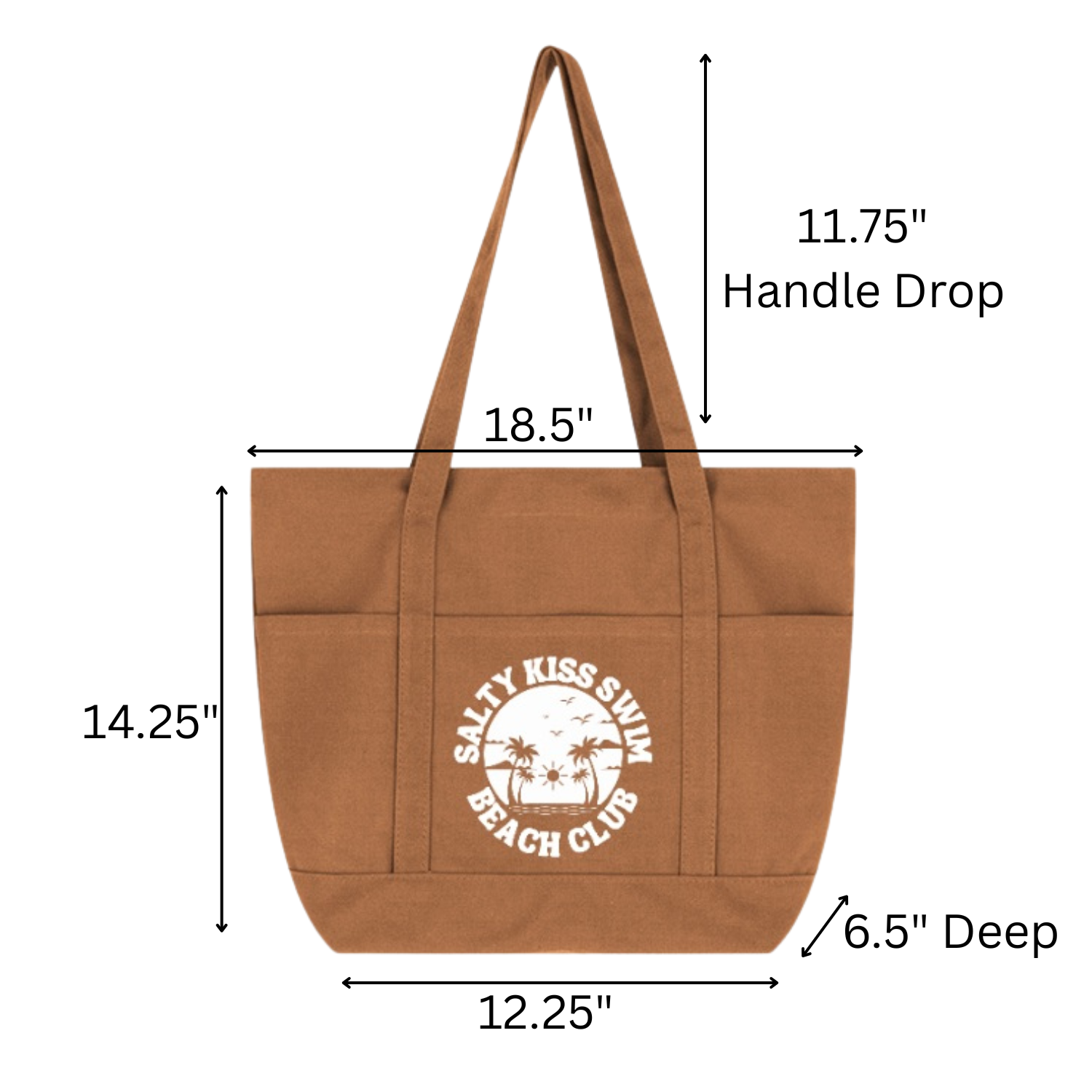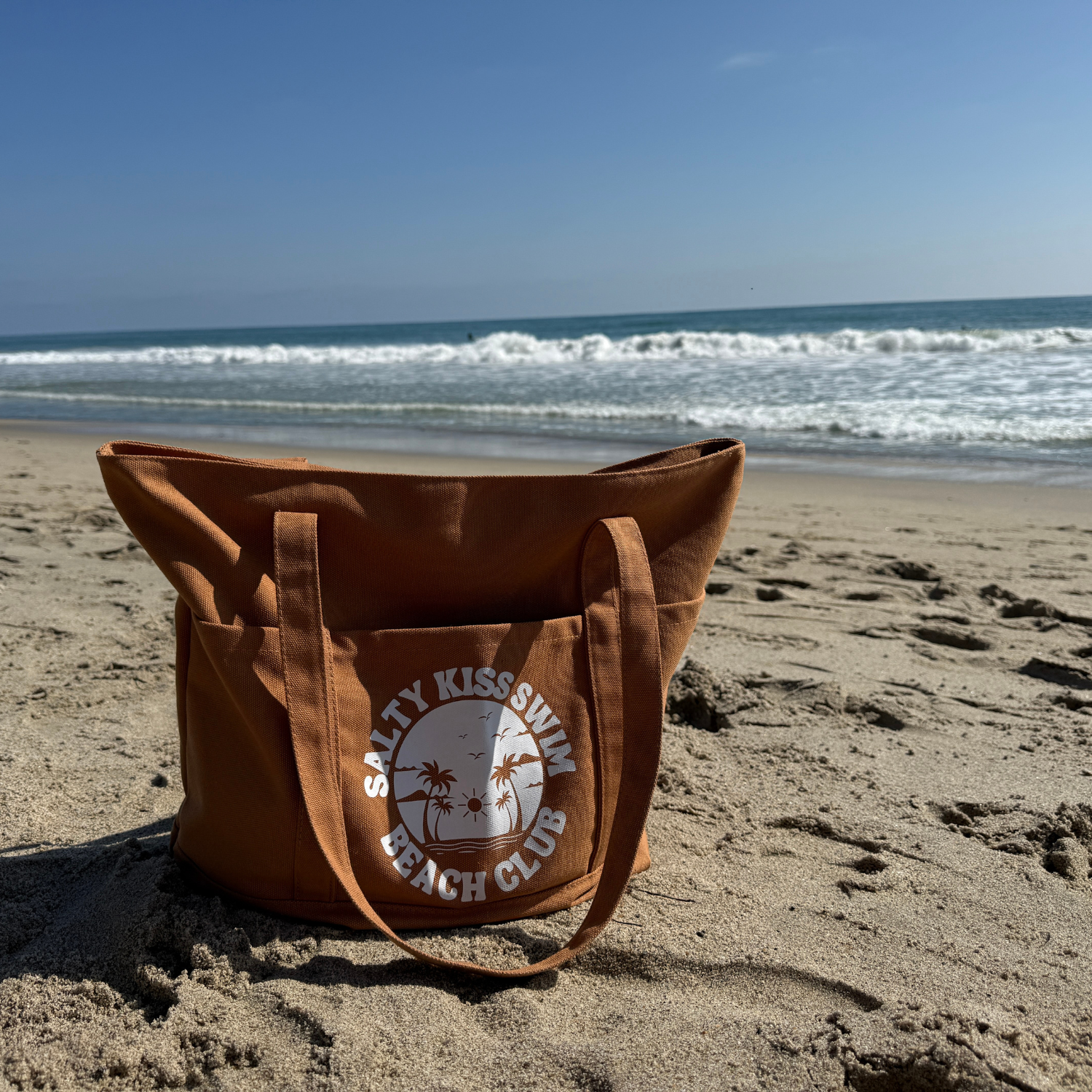 Meet your new beach BFF — the Beach Club Tote! Big enough to haul all your essentials and those “just in case” extras. With 3 handy outer pockets for grab-and-go stuff, a little inside pocket for your small treasures, and a full zip top to keep it all safe and sound. Sand, sun, and this bag? Perfect trio.