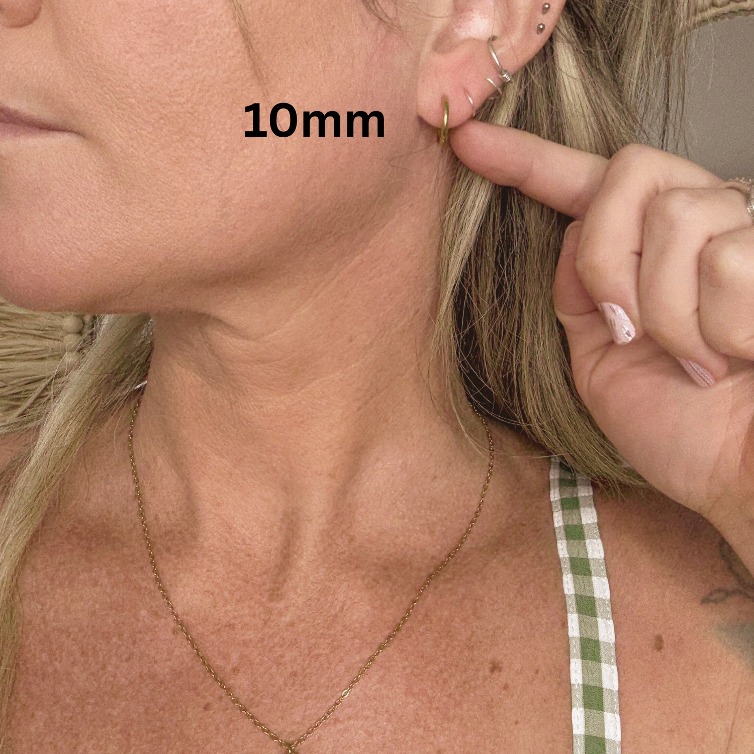 Minimal yet striking, these earrings shine on their own or pair beautifully with other huggies or studs for a trendy, stacked look. A must-have for any jewelry collection.